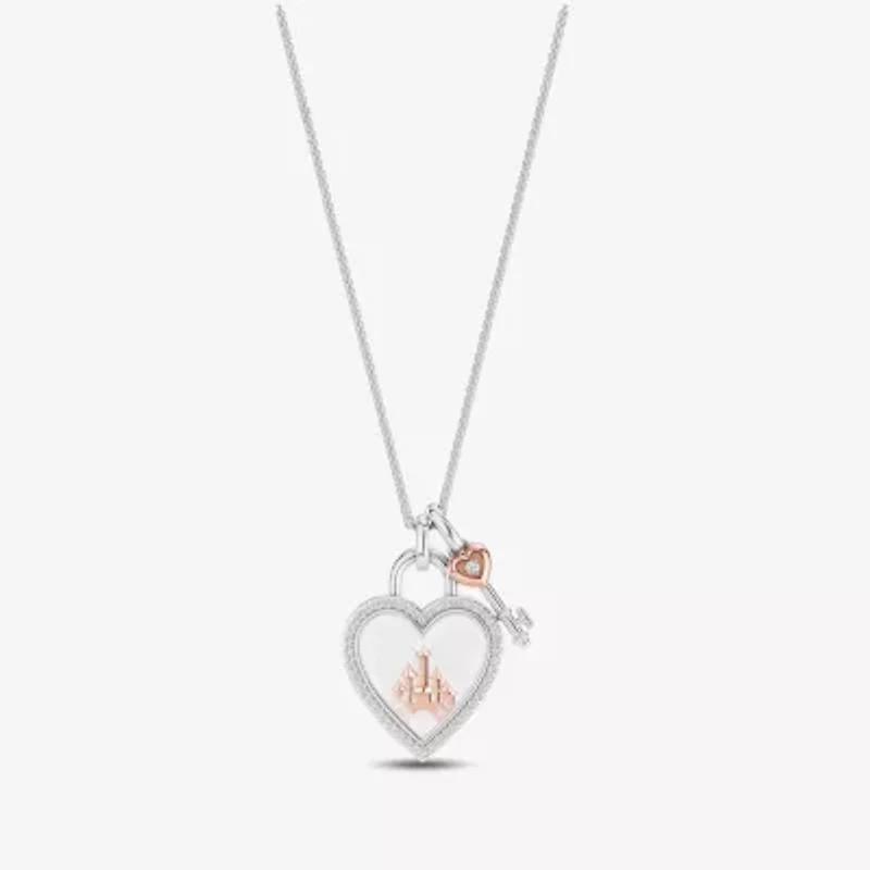 Enchanted Disney Fine Jewelry Womens 1/6 CT. T.W. Genuine White Topaz 14K Rose Gold Sterling Silver 16 Inch Pendant Necklace
