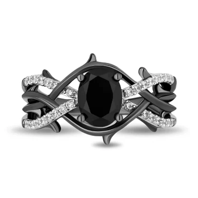 Ring Style: Cocktail Rings, Side Stone Rings Character: Maleficent Diamond Clarity: I2-I3 Setting: Prong Shape: Oval Stone Cut: Oval Diamond Color: I-J Metal Color: Black Ring Gallery Height: 6.2mm Rounded Carat Weight: 1/5 Ct. T.w. Stone Treatment: Dyed Band Width: <2mm Care: Wipe Clean Stone Type: 1 Genuine Onyx, 33 Natural Diamond Authenticity: Genuine Stone Metal: Sterling Silver Country of Origin: Imported 2 1 Clarity rating: IJ I2I3 Polished finish Prong setting Imported Product Specifications 6.2mmX2mm, 6.2mm 0.89 Material Metal, Sterling silver