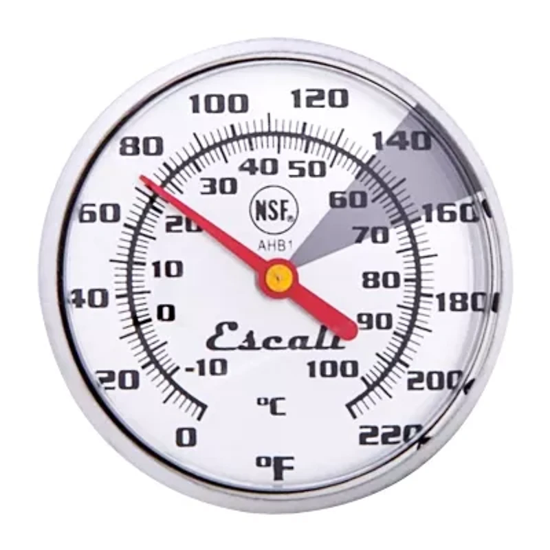 This Escali AHB1 Instant Read Beverage Thermometer indicates the optimal temperature range for frothing milk on the dial display and features a stainless-steel pot clip for safe hands-free measuring. The durable stainless-steel design is dishwasher safe and NSF certified. The large easy-to-read display will measure Fahrenheit and Celsius temperatures.