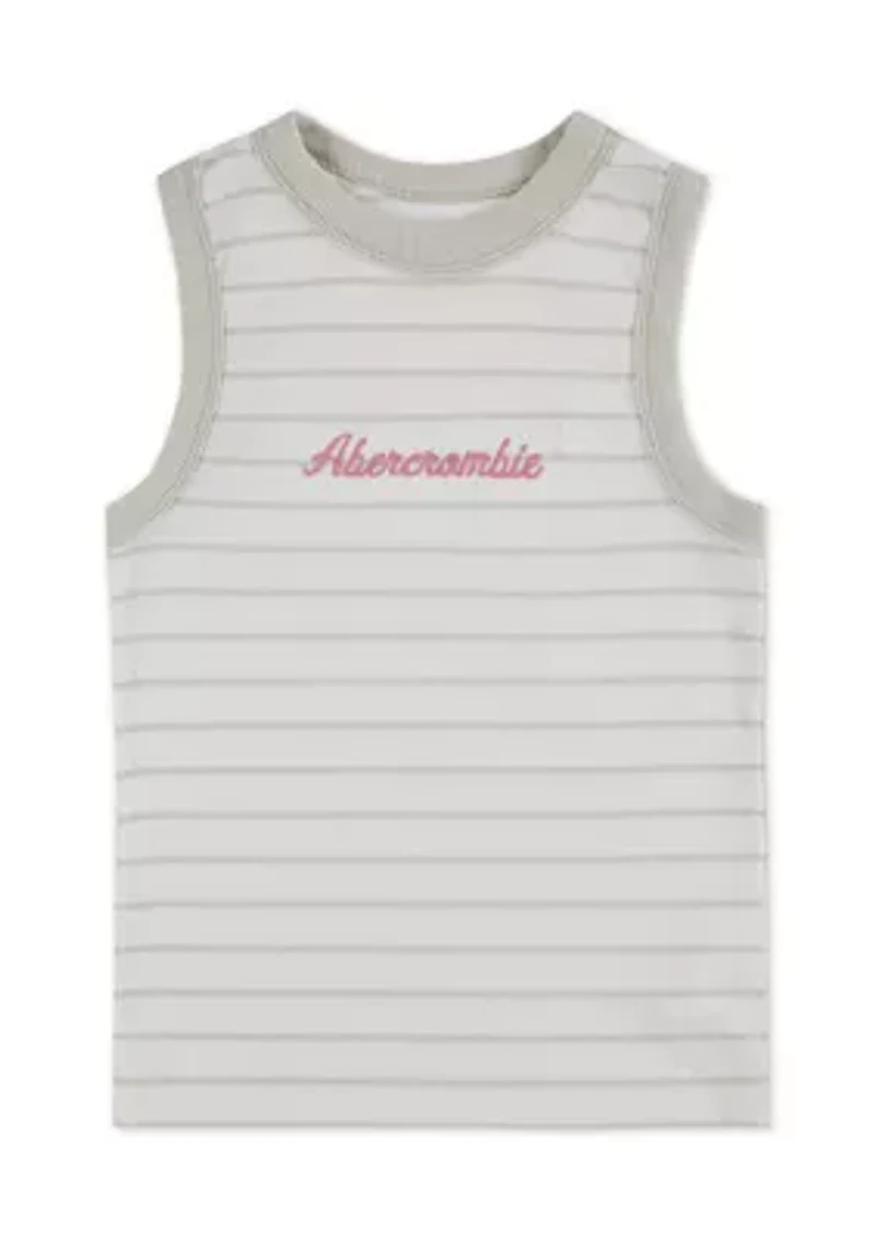 Sporty with a polished finish, this ribbed stripe high-neck tank is a modern everyday essential. Designed with a flattering high neckline and soft ribbed texture, it features classic stripe detailing and subtle abercrombie embroidery for a signature touch. Pullover Crew neck Sleeveless Imported Material & Care Cotton, polyester, spandex Machine washable