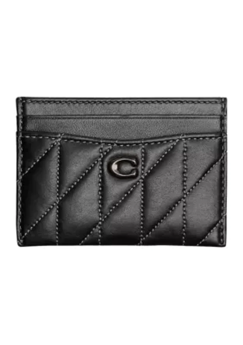 Crafted from high-quality Nappa leather, this chic card case from COACH is embellished with gold hardware and a quilted design for an elevated style. Imported Product Specifications 4.25'' L x 3'' H Material & Care Leather Spot clean only