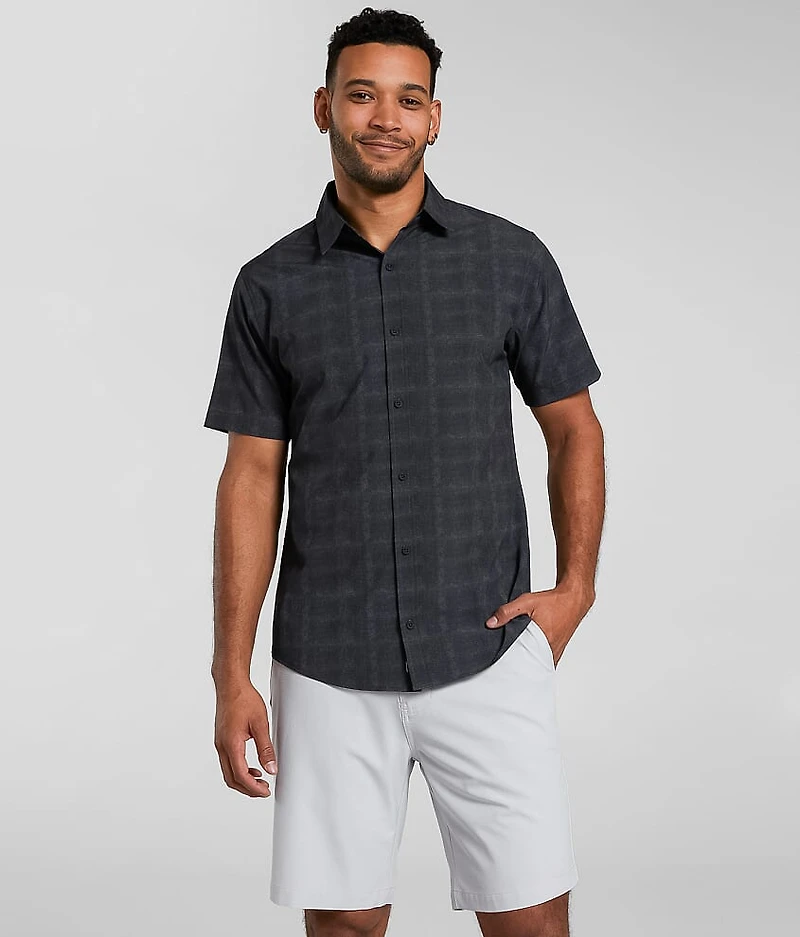 Printed ripstop button front shirt Standard fit is form-fitting in the shoulders, chest and bodice Quick dry