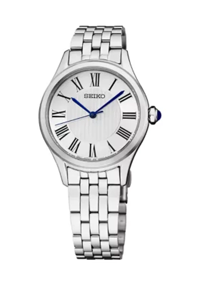Discover timeless style with this elegant watch from Belk & Co. Crafted from polished stainless steel, it showcases a sleek analog dial and a secure fold-over clasp. The reliable quartz movement ensures accurate timekeeping. This delightful accessory makes a perfect holiday gift, adding a touch of sophistication to any outfit. Foldover clasp Analog dial Quartz movement Polished finish Limited liability 3 year warranty Imported Belk Exclusive Product Specifications 29.6 mm case size Material & Care Stainless steel Clean with a soft cloth