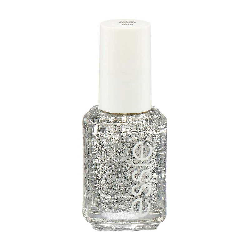 Dazzle and shine with Essie's "Set in Stone" nail polish! This luxurious 0.46 fl oz bottle of premium lacquer is your ticket to a sparkling manicure that will turn heads and add a touch of glamour to any look. Perfect for those who love to make a statement, this polish features a stunning array of silver glitters in various sizes, creating a multidimensional effect reminiscent of a starlit night.