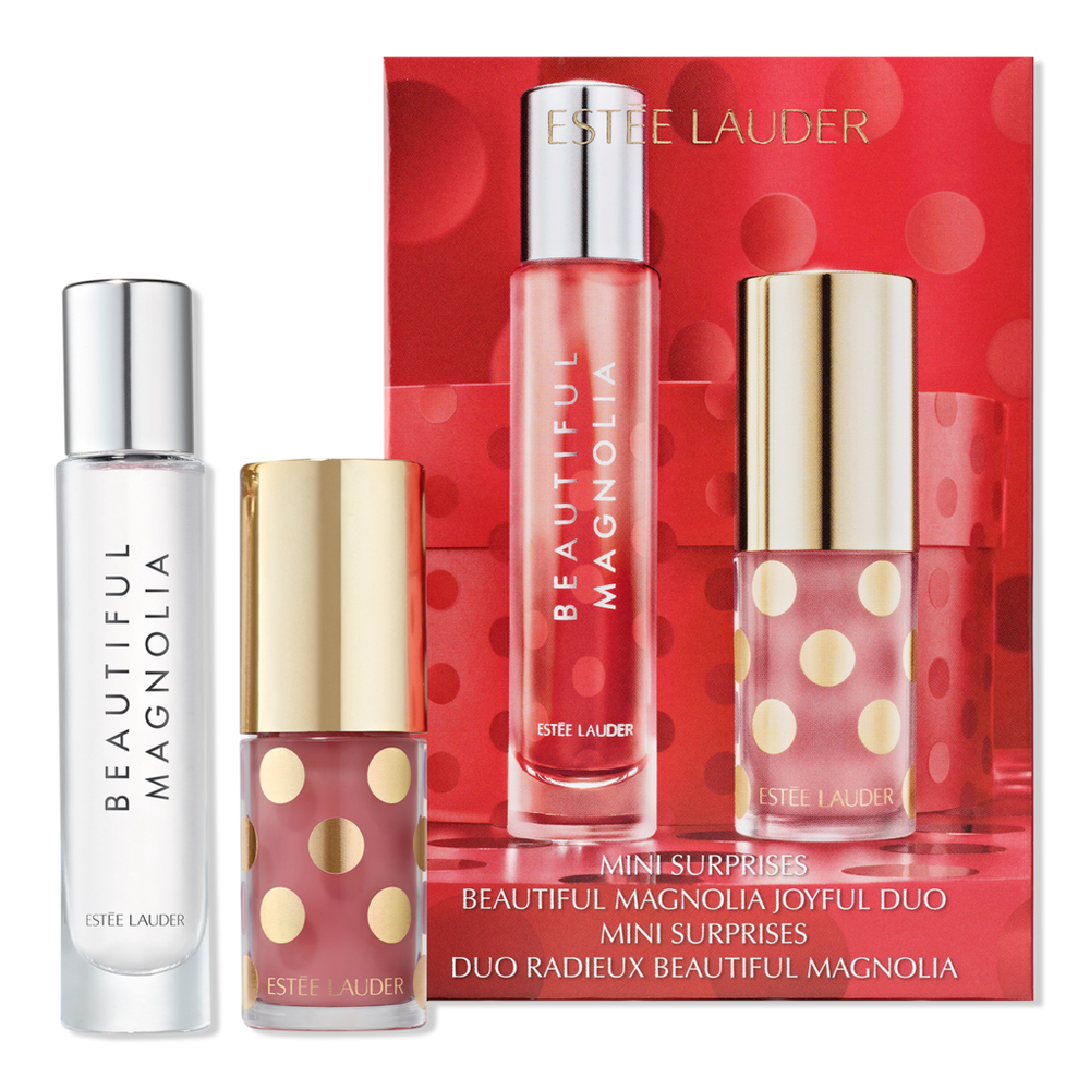 MAGNOLIA 2 PC. Includes: Beautiful Magnolia Eau de Parfum Travel Spray, full-size (0.33 oz). Limited Edition Lip Oil*in Celebrate (A light baby pink with a neutral undertone and sheer finish), full-size (0.15 oz). *Este Lauder packaging is intentionally designed with extra room in the bottle to ensure optimal functionality. Rest assured you are still receiving the full 4.5ml of this juicy hybrid oil and gloss to wear and enjoy.. Benefits: Unwrap inspiration - creating a world where you write your own rules and celebrate your beauty. A vision that reflects all that you are, all that you're becoming and all those you love.. I AM BEAUTIFUL. Beautiful Magnolia celebrates the multitudes you contain. Your beautiful dualities.. The multi-dimensional blend fills the air with signature notes of lush Magnolia, solar Gardenia, warm Woods and luminous Musk.. Limited Edition Lip Oil: Sheer, succulent shine. 12 hours of cushioning hydration.. Key Notes: Top Notes: Magnolia Petals, Mat, Water Lotus. Middle Notes: Magnolia Oil, Solar Gardenia Accord, Rose. Base Notes: Cedarwood, Sandalwood, Illumina Musk.