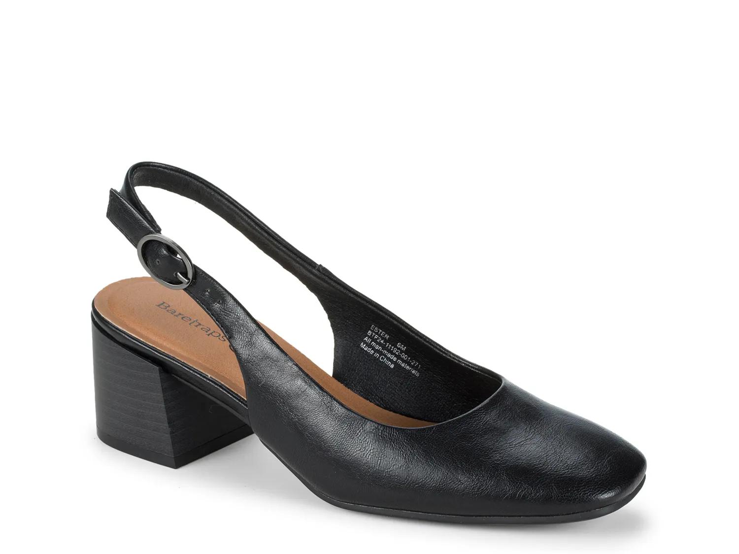 The Ester pump from Baretraps offers a modern take on the slingback silhouette with its square toe and stacked block heel, making it a versatile choice for everything from office days to evening plans. Designed with an adjustable strap for a secure fit, this shoe blends fashion-forward details with everyday ease.