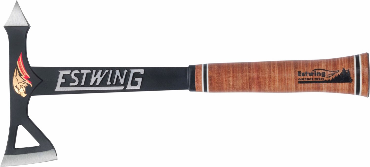 Anytime you need to cut, chop or clear a path, reach for the Estwing Black Eagle Tomahawk Axe. The solid steel blade has been hand-sharpened for maximum performance. It's paired with a genuine leather grip and nylon sheath. Made in USA.