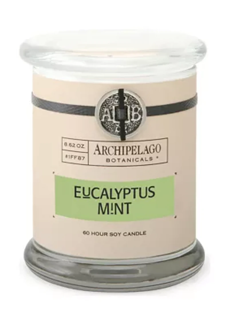 Turn your home into an oasis with the rejuvenating blend of Eucalyptus and Mint. Archipelago's hand-poured jars are made with premium soy wax and their complex and intoxicating essential oil fragrance blend. Each candle contains their safe, lead-free wick and is adorned with their signature coin and strap! Key Notes: A blend of Eucalyptus Leaf, Fresh Mint, and a hint of Grapefruit. Imported