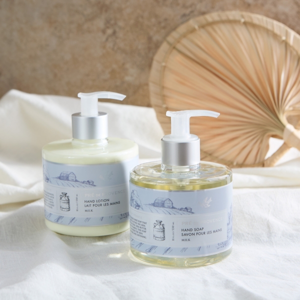 The European Milk 2-pc. Liquid Soap and Lotion Set will keep your hands clean, moisturized, and softly scented. Formulated with French craftsmanship, this set also makes a perfect luxury gift. Set includes one (1) liquid soap and one (1) lotion Each bottle measures 6H x 9 in. in diameter 11 fl. ounces each Natural ingredients enriched with shea butter Milk scent Pump dispenser Care: Store in a cool, dry place. Keep away from direct or extreme heat and light. This item is available at Kirklands.com only, not available in stores. Please note: this item cannot be shipped to APO/FPO addresses.