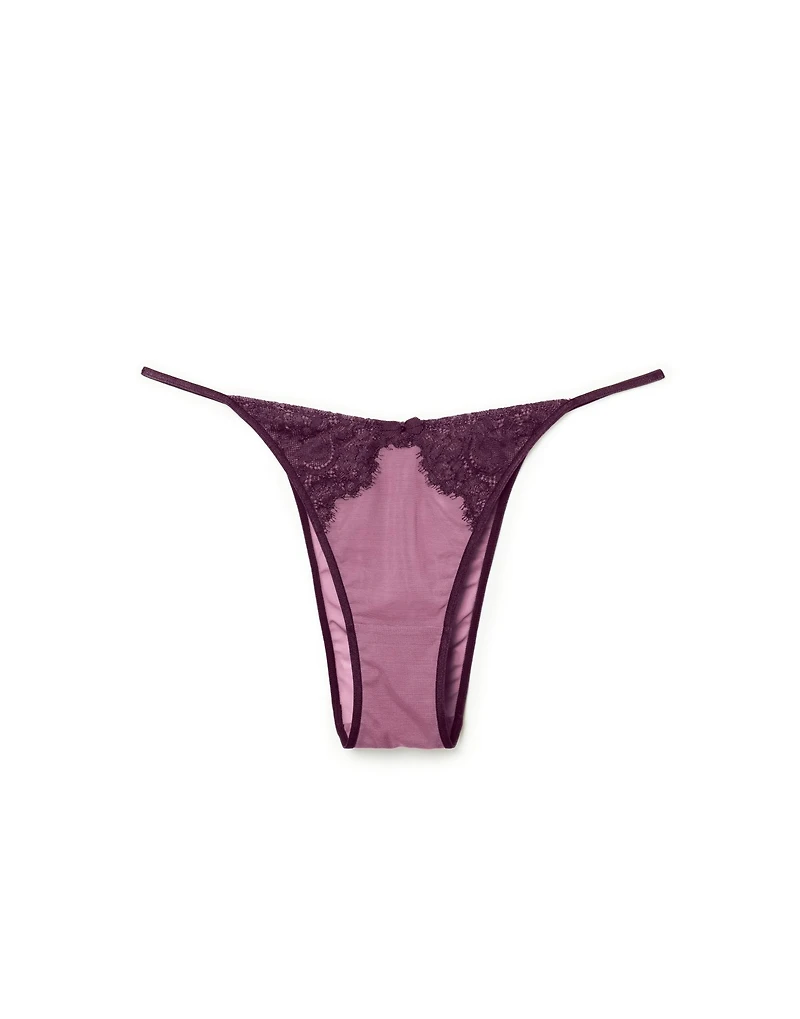 The Evelyn Brazilian Dark Purple lace Brazilian is a romantic-fashion standout. Effortlessly chic, this style features a Brazilian Panty for a flirty twist. (Available in sizes XS-XL.)