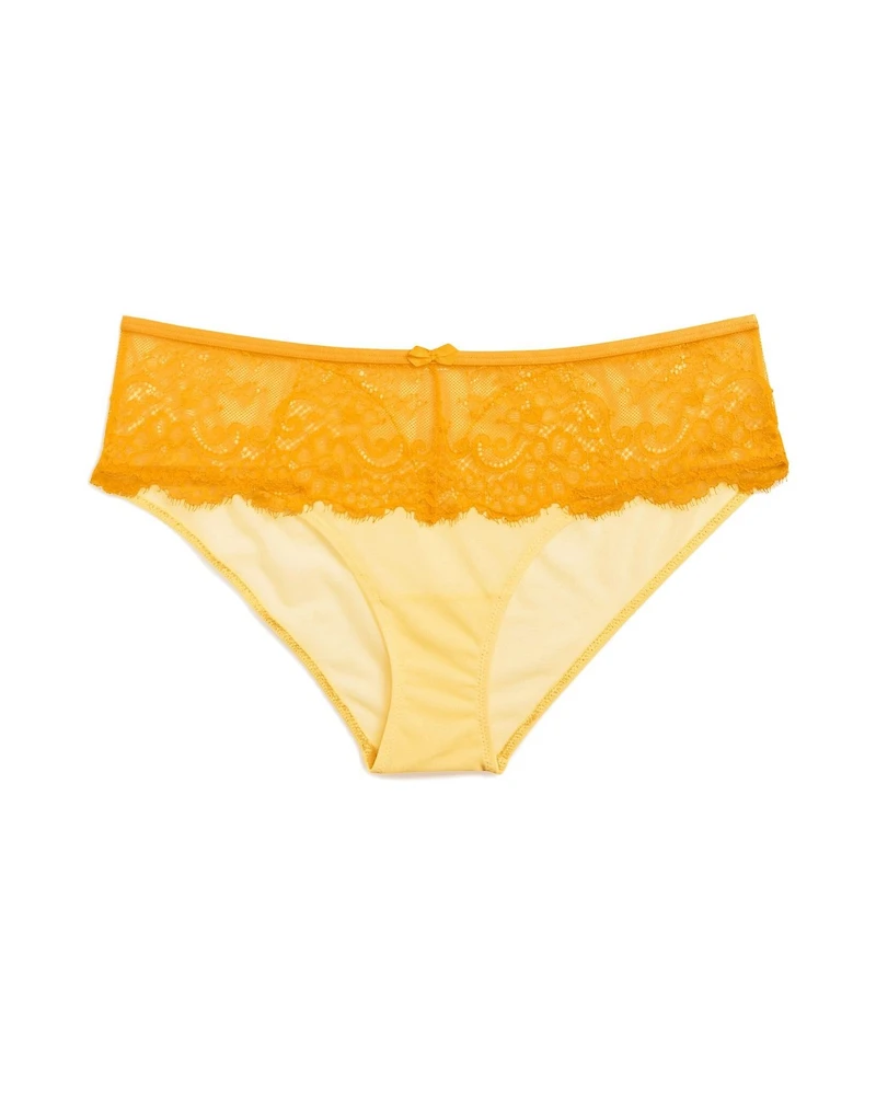 The Evelyn Hipster Medium Orange lace hipster is a romantic-fashion standout. Effortlessly charming, this style features a Hipster Panty for a flattering silhouette. (Available in sizes XS-XL.)