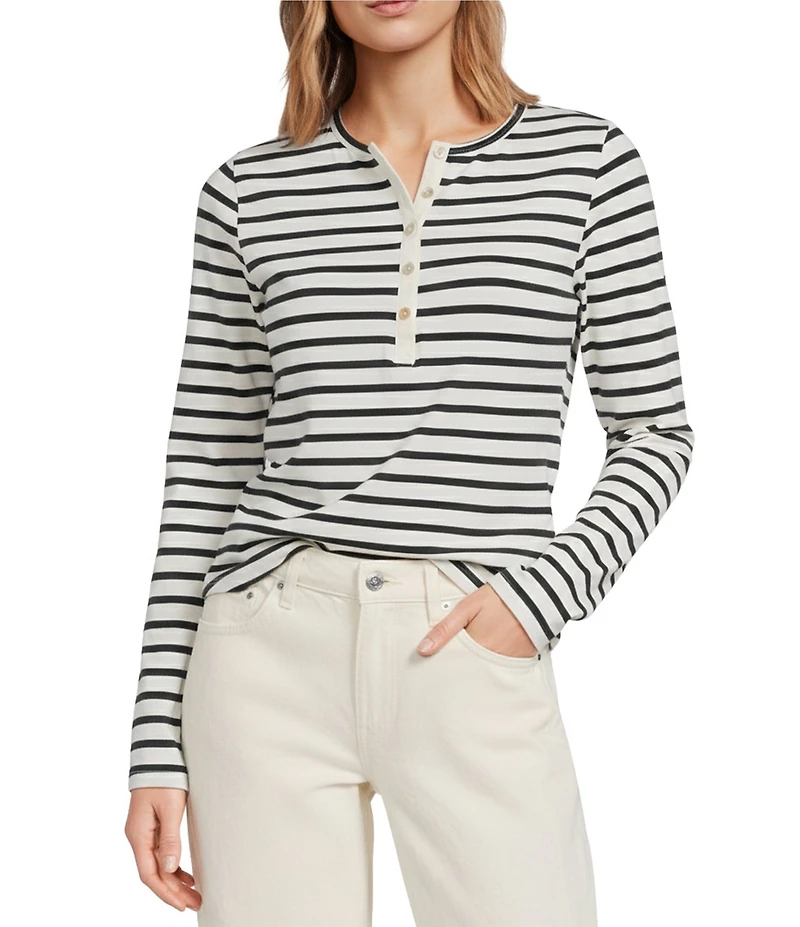 Every Henley Knit Striped Round Collar Long Sleeve Top