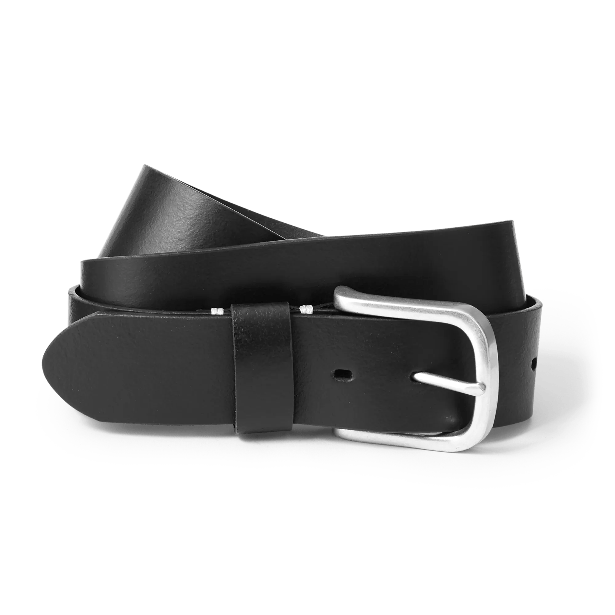 Hand-stitched detailing accents this casual, 1.5"-wide leather belt. Metal buckle with antiqued finish.