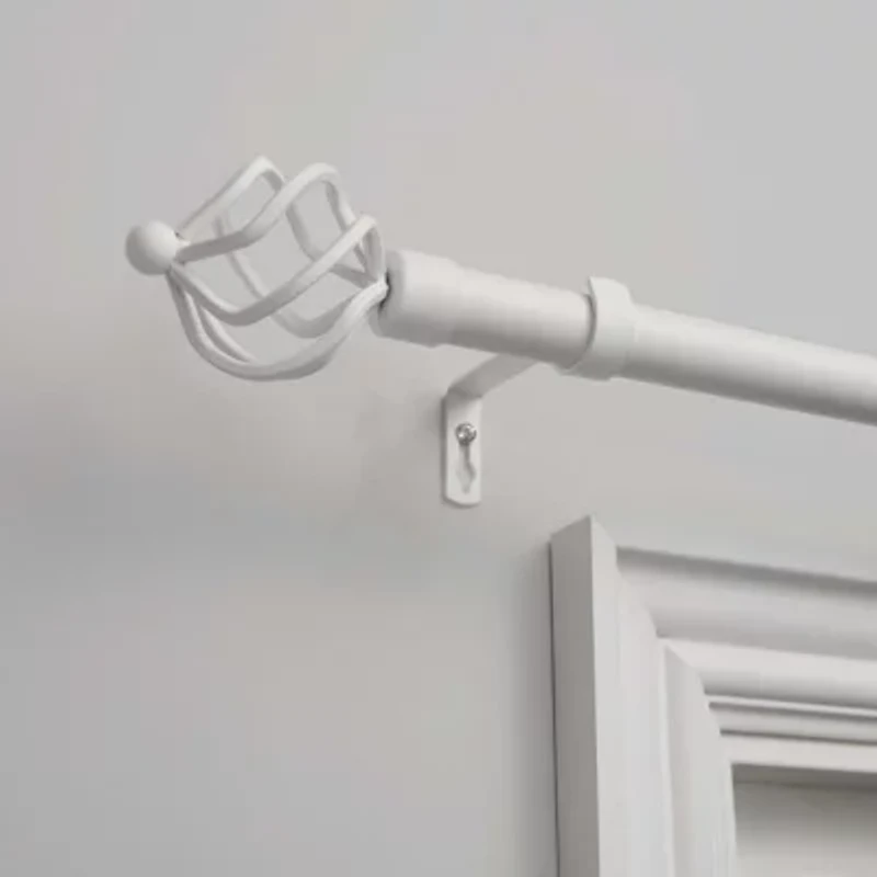 The Torch decorative curtain rod and finial set has an open, airy design with a twisted iron strand sphere shape finials. This set will provide a visually balanced appearance for your window treatments. The 2.6" diameter x 3.2" long finials will insure that your window curtain panels will remain securely on the rod. The 1" diameter iron adjustable curtain rod is designed to fit a wide range of window widths, and has a sturdy 25 lb. capacity that will support flowing sheers to thermal blackout panels. The 3.5" fixed depth projection bracket provides a gracious amount of space for fabrics to drape perfectly. Accommodates window curtain panels and drapes that are designed with various tops, including: rod pocket, pinch pleat, clip rings, grommets, tab top, or hidden back tab top. Provides an attractive accent to every window treatment in your living room, bed room, bathroom, kitchen, and kids room. Installs easily with included hardware and installation instructions. Sturdy, easy clean, no fuss, wipe clean finish will last for lifetime. This window curtain rod and finial set will add the perfect finish accent to any window treatment and adds a refined style to your home decor.