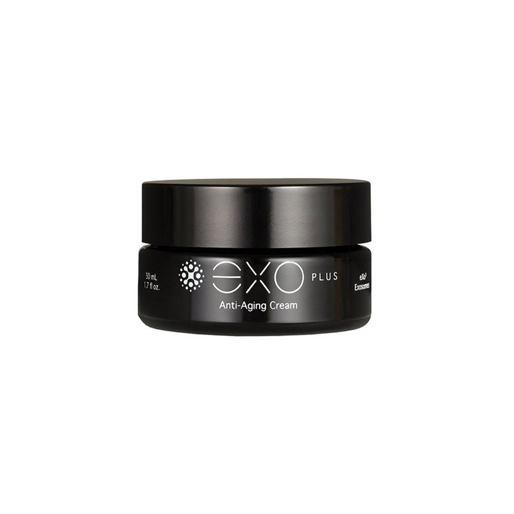 EXO PLUS Anti-Aging Cream. Key Ingredients: At the heart of EXO PLUS is its proprietary eXo Exosome Technology. These bioactive nanoparticles are derived from stem cells and engineered to deliver targeted repair and rejuvenation.. eXo Exosomes: Stimulate collagen production and fibroblast proliferation to reduce fine lines and wrinkles, modulate inflammatory responses to calm redness and irritation, deliver essential lipids, growth factors, nucleic acids, and proteins to nourish and reinforce skin barrier function. Hyaluronic Acid: Multi-molecular weights deliver instant and long-term hydration, plump fine lines, and boost natural hyaluronic acid production.. Collagen-Building Peptides: Proteins support dermal matrix strength and elasticity while improving skin tone and texture.. Retinyl Palmitate (Provitamin A)A gentler, stabilized retinol derivative that:Promotes skin cell turnover and smoothness, diminishes wrinkles and improves texture, helps fade hyperpigmentation and blemishes, provides antioxidant protection.. Essential Fatty Acids: A skin-restoring complex of Omegas 3, 6, 7, and 9 that; Rebuild ceramides and support the lipid barrier, improve elasticity and suppleness, provide anti-inflammatory and antibacterial benefits. ESS Vitamin Complex (A, C, D3, E: a powerhouse of antioxidants and skin-renewing vitamins that: Boost collagen synthesis, brighten skin tone and reduce dark spots, protect against oxidative stress, strengthen the skins immune defense. Coconut Oil: Deeply hydrates and soothes with natural antimicrobial and anti-inflammatory properties. Grape Seed Oil: Rich in linoleic acid and antioxidants to improve elasticity, reduce inflammation, and support a clear complexion.. Brown Algae Extract (BAE): Delivers potent antioxidant and UV-protective benefits while enhancing hydration and oxygenation for youthful glow.. Botanical Super Extracts: Including Noni Fruit and Agastache Mexicana, these plant actives soothe irritation, calm inflammation, and promote microbiome balance.. CCT & OM Fatty Acids: Nourish and fortify the skins protective barrier without clogging poresideal for all skin types.. Benefits: Rich, yet smooth and weightless, this cream melts seamlessly into the skin, leaving it soft, hydrated, and perfectly prepped. The silky texture wears beautifully alone or as a base under skincare and makeup.. Formulated Without: Fragrance. GMO. Allergens. Parabens. Phthalates. Gluten. Sulfates.