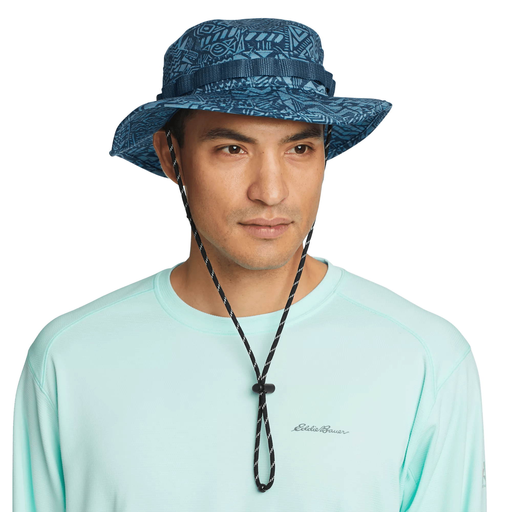 Lightweight and packable, this bucket hat is vented for breathability, has an adjustable chinstrap to hold it in place in the wind, and has built-in UPF sun protection.