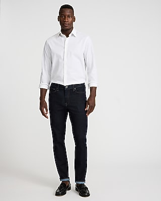Cut in an extra slim fit that is form fitting all over, this 1MX dress shirt is crafted with just enough stretch for all-day comfort. Complete with a point collar, full button front, long sleeves with button cuffs, and a round hem for a timeless look. This style features moisture wicking properties for added temperature regulation.