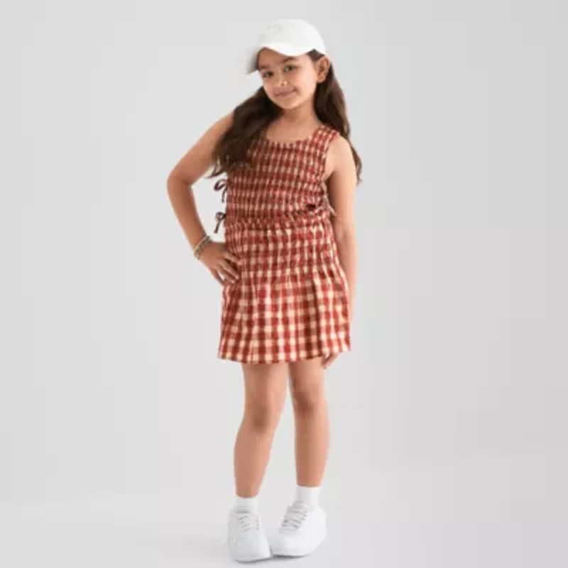 Bring on the cool-girl vibes with this gingham A-line skirt from Eyeshadow for big girls. Made from woven cotton, the short skirt has a flat front, an elastic waist, and built-in shorts. Team it with a tank top and sneakers.