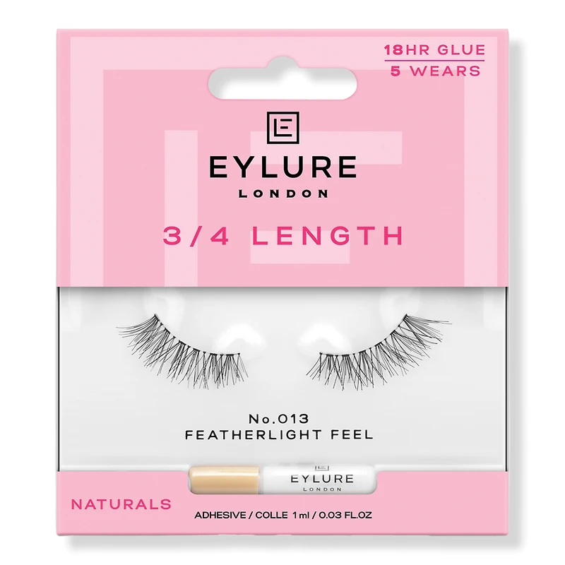 EYL 3/4 LENGTH NO. 013. Features: Perfect for adding a touch of texture and fullness to your lashes. Soft tipped length style lashes are no fuss, no measure & no trim lashes. Shorter length makes for smooth and quick application process. Reusable for 5+ wears and includes latex-free glue that lasts up to 18 hours. Adhesive and lashes are latex free. : :
