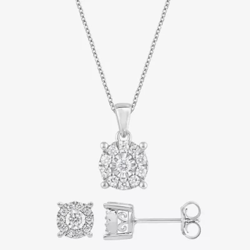 (F, Si2) Womens 1/2 CT. T.W. Lab Grown White Diamond Sterling Silver Round 2-pc. Jewelry Set in Chattanooga, TN
