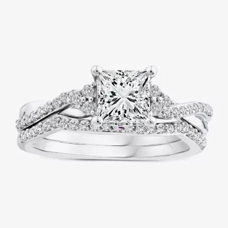 (F / Vs2) Womens 1 3/8 CT. T.W. Lab Grown White Diamond 10K Gold Side Stone Bridal Set