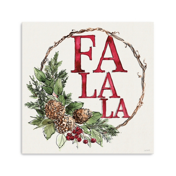 The Fa La La Christmas Wreath Canvas Art Print boldly radiates holiday spirit! Detailed with festive greenery, this holiday art print is sure to make your home merry and bright. Overall dimensions Width: 20 in. Depth: 1.25 in. Height: 20 in. Distinctively printed on stretched canvas Wrapped edges complete the look Features the text "Fa La La" Wreath design Hues of red, green, white, and brown Artist: Anne Tavoletti Weight: 1.8 lbs. Hangs from back-mounted hardware Care: Dust with a soft, dry cloth. This item is available at Kirklands.com only, not available in stores. Please note: this item cannot be shipped to APO/FPO addresses.