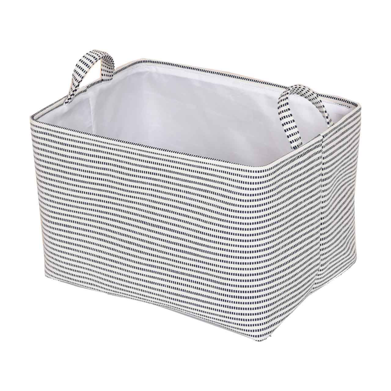 Organize your home in style with our versatile Fabric Basket with Cloth Lining and Handles. Available in assorted designs, this large basket is the perfect blend of functionality and aesthetic appeal, making it an essential addition to any room in your house. Crafted from high-quality fabric, this basket features a durable construction that ensures long-lasting use. The interior is lined with soft cloth, providing a gentle surface that protects your belongings from scratches and damage. The basket comes in two stylish patterns: a subtle beige stripe and a classic black stripe, allowing you to choose the one that best complements your decor. Measuring a generous size, this basket offers ample storage space for a variety of items. Whether you need a place to store toys, blankets, clothes, or household essentials, this basket has you covered. The sturdy handles on either side make it easy to carry from room to room, adding convenience to its list of attributes. The neutral and understated patterns make this basket a versatile piece that can be used in any setting, from living rooms and bedrooms to nurseries and laundry rooms. The clean, modern design ensures it blends seamlessly with both contemporary and traditional decor styles. Enhance your home organization with the Fabric Basket with Cloth Lining and Handles from pOpshelf. It's not just a storage solution; it's a stylish accessory that adds a touch of elegance to your space.