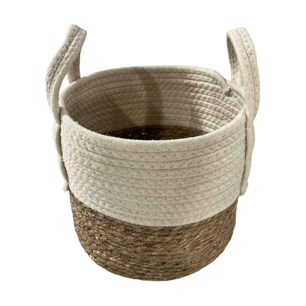 Fabric Rope 2-Tone Basket with Handles, Small