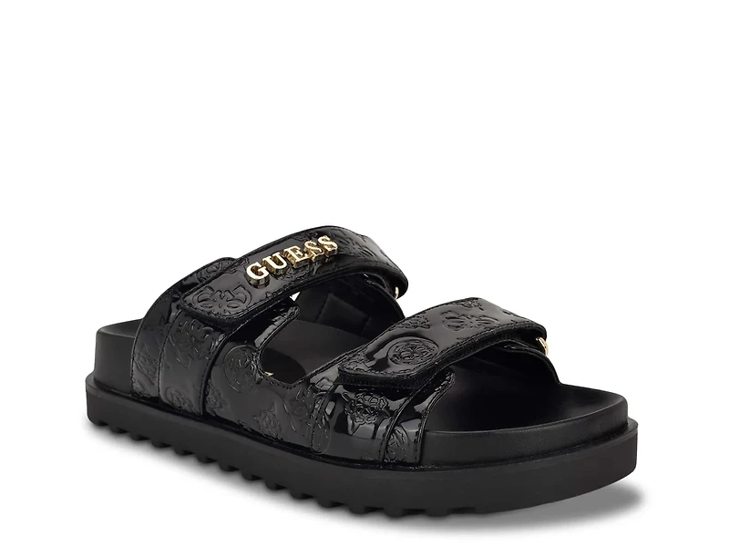 Great for a warm weather look, the Guess Fabulon sandal brings versatile style to your wardrobe. This dual strap pair sports a molded footbed for extra comfort, while the patent finish catches the eye.
