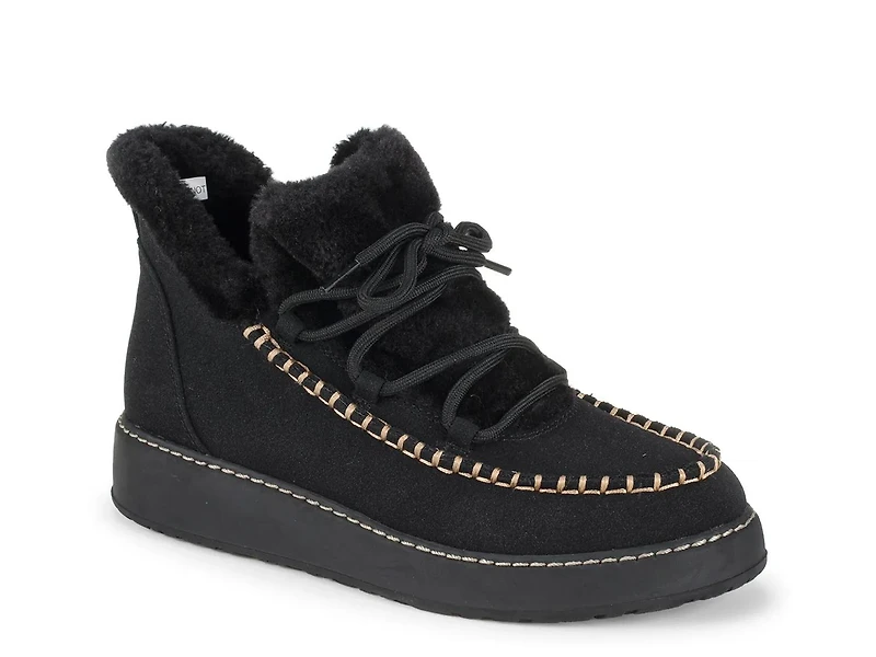 Trendy and comfy, the Baretraps Faelyn bootie perfectly complements your leggings or cuffed jeans. This lace-up bootie is designed with faux fur lining and cushioned insole to provide ultimate comfort. Lightweight synthetic outsole offers slip resistance.