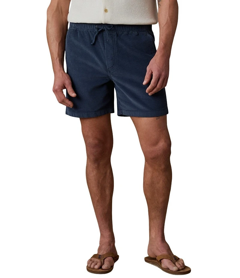 From Faherty, these shorts feature: Elasticated waistband with drawcord Front slash pockets Welt back pockets with button-through on right pocket Stretch corduroy fabric Approx. 6" inseam Organic cotton/spandex Machine wash/tumble dry Imported.