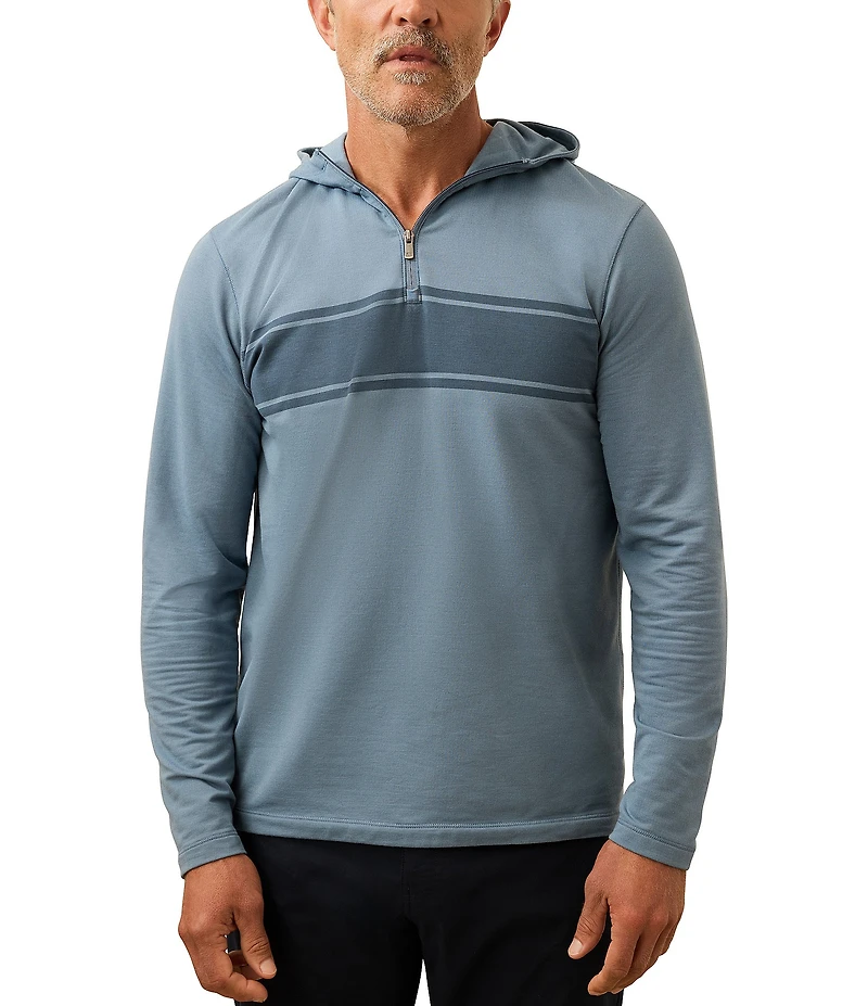 From Faherty, this hoodie features: Regular fit Attached hood with drawstrings Long sleeves Quarter-zip closure Chest stripe detail Pullover construction Stretch Cotton/modal/nylon/spandex Machine wash cold/tumble dry Imported.