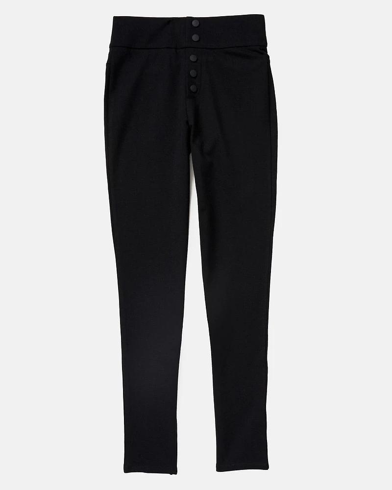 The Fairfield Pant Black jersey-ponti pant is a modern wardrobe staple. Designed with a Slim Leg Pant silhouette and Full Length for a sleek look, it features an Elastic Waistband and Faux Front Buttons for effortless style. (Available in sizes XS-XL.)