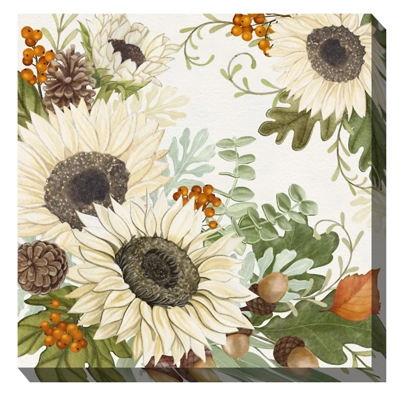 Give your garden an autumnal look with this Fall Finale Outdoor Canvas Art Print. Whether it hangs in a sunroom or covered patio, these blooming sunflowers will refresh your space! Art measures 24L x 1.5W x 24H in. Distinctively printed on stretched canvas Wrapped edges complete the look Features fall floral subject Hues of green, ivory, orange, brown, and tan Safe for outdoor use Weight: 3.6 lbs. Hangs from back-mounted hardware Care: Dust with a soft, dry cloth. This item is available at Kirklands.com only, not available in stores. Please note: this item cannot be shipped to APO/FPO addresses.