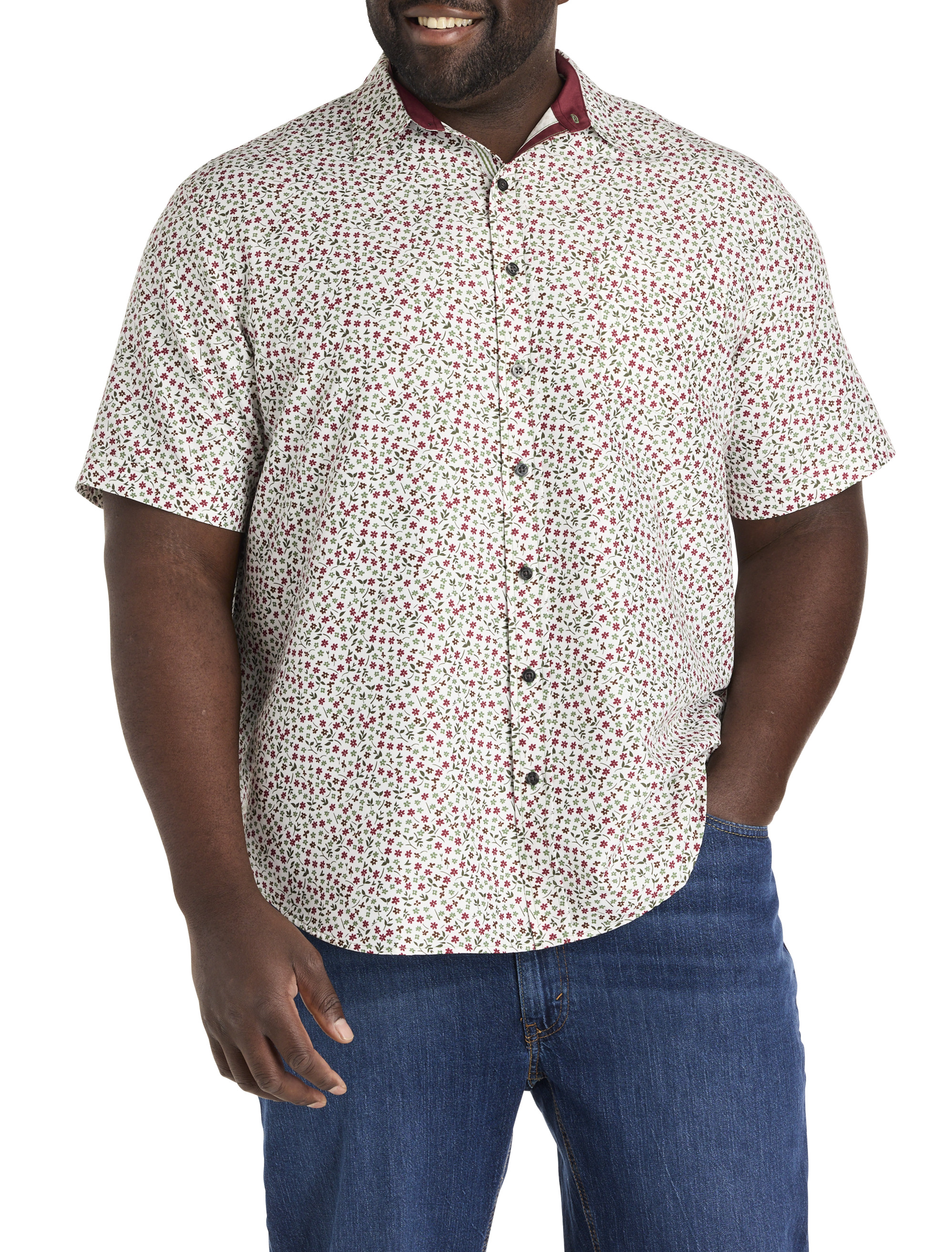 This season, you'll "fall" for florals. Designed at DXL with precise proportions and an ideal fit for Big and Tall guys, this elevated short-sleeve sport shirt is sophisticated, yet casual. It's a modern update to classic floral styles of the past, complete with signature details and expert craftsmanship. Plus, it's wrinkle resistant for easy care, saving you time and money on dry cleaning. Versatile and durable, it's sure to be a staple in your wardrobe and it pairs perfectly with khakis, jeans and shorts.
