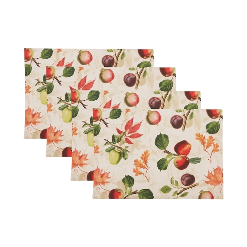 Bring the cozy charm of fall to your table with these Fall Orchard Placemats! These placemats are perfect for adding a welcoming touch of fall-inspired elegance to any setting. Set includes four (4) placemats Each placemat measures 19L x 13H in. Crafted of 100% cotton Features a botanical-inspired print Hues of red, green, orange, brown, and beige Flat weave construction Fused and lined Care: Hand wash only. Line dry and low iron. This item is available at Kirklands.com only, not available in stores. Please note: this item cannot be shipped to APO/FPO addresses.