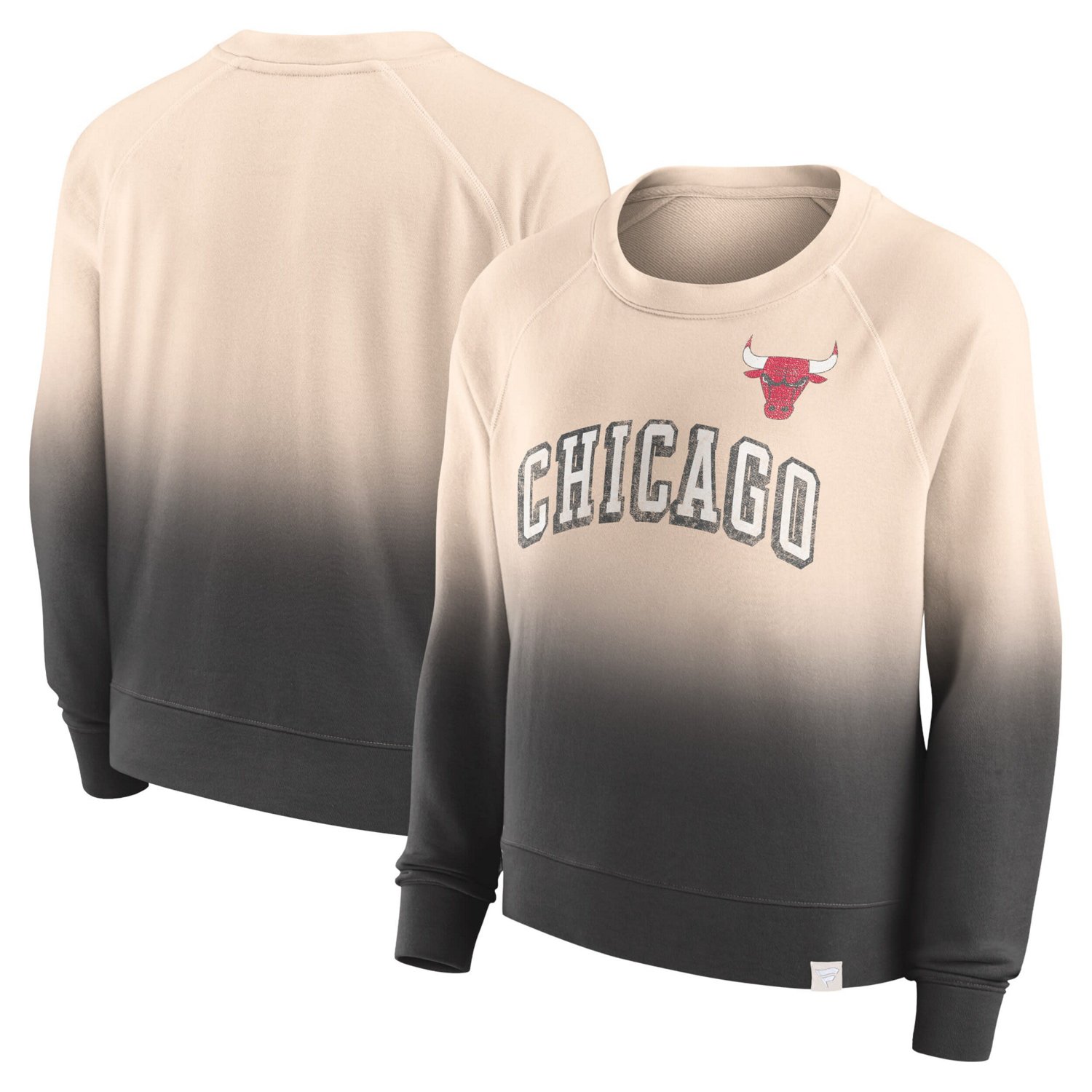 The Women's Fanatics Tan/Black Chicago Bulls Lounge Arch Raglan Pullover Sweatshirt is the perfect way to show your support for the Chicago Bulls With its ombre design and distressed screen print graphics this sweatshirt is sure to turn heads The raglan sleeves and side splits at the waist hem provide a comfortable and stylish fit while the midweight sweatshirt is perfect for moderate temperatures Whether you're cheering on the Bulls at the United Center or just relaxing at home this sweatshirt is a must-have for any fan