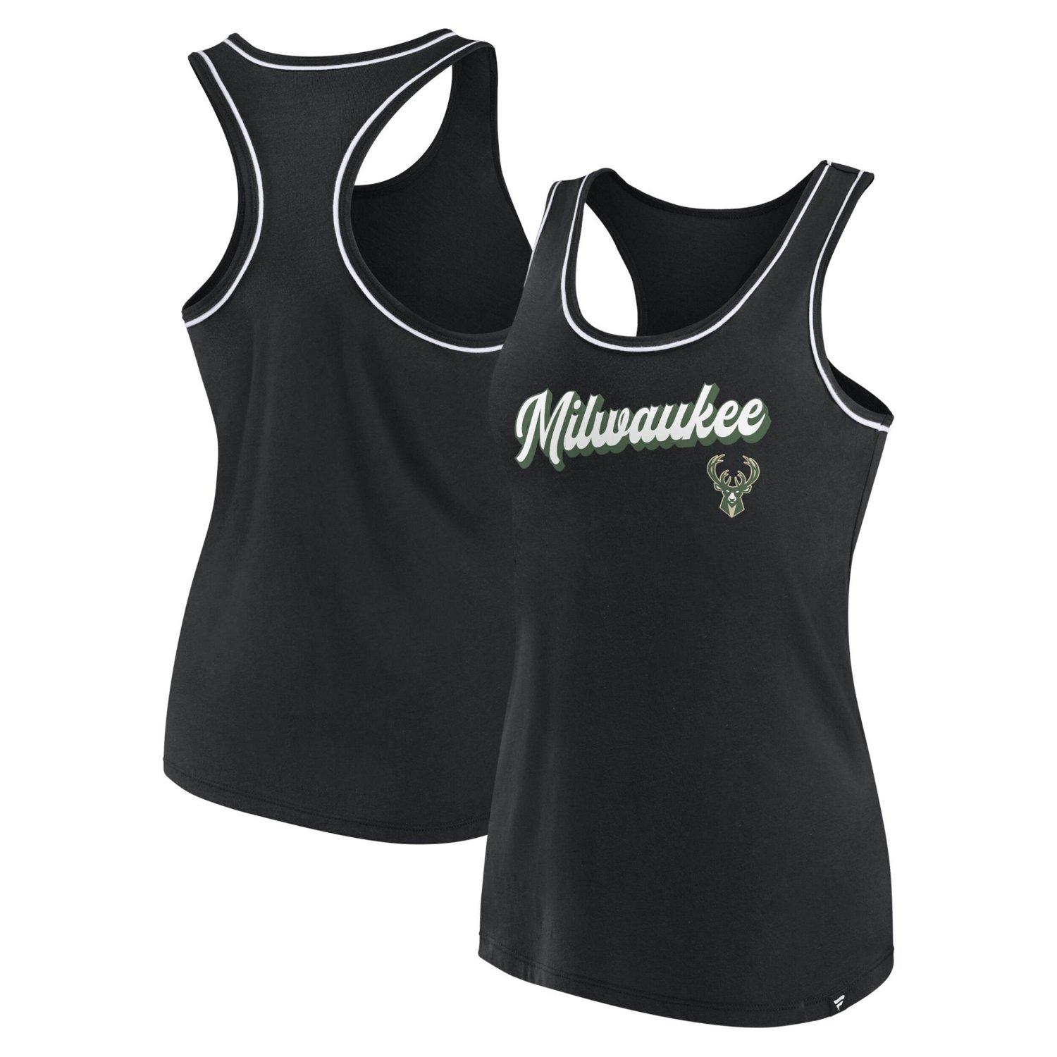 The Women's Fanatics Black Milwaukee Bucks Wordmark Logo Racerback Tank Top is the perfect way to show your support for the Milwaukee Bucks Made from soft cotton this tank top features a scoop neck and screen-printed graphics of the Bucks' iconic wordmark logo Whether you're cheering on the Bucks at the game or relaxing at home this tank top is sure to keep you comfortable and stylish The Milwaukee Bucks are one of the most storied franchises in NBA history and their fans are some of the most passionate in the league This tank top is a great way to show your support for the Bucks and your love for the game of basketball