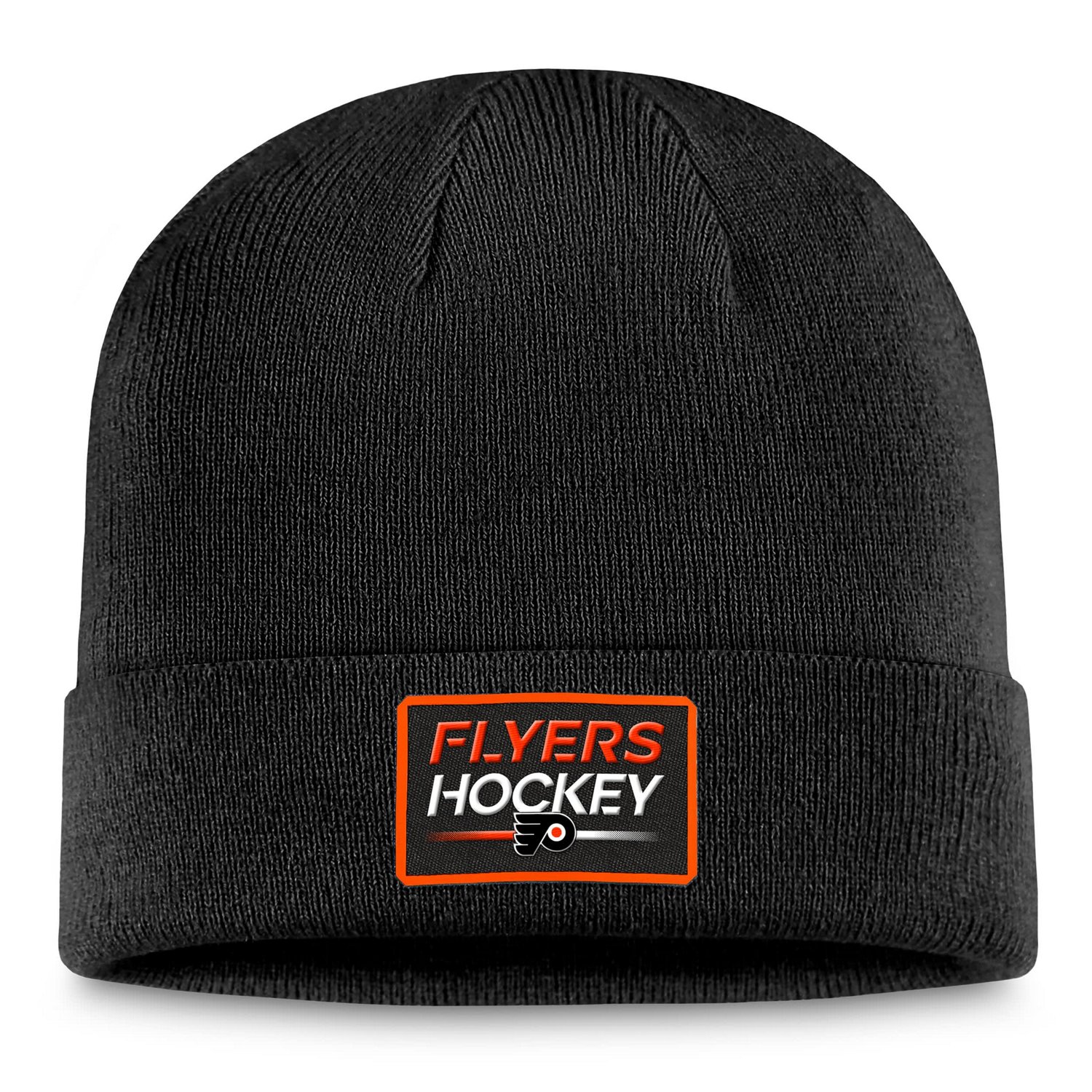 Suit up with the same gear your favorite Philadelphia Flyers players do with this Authentic Pro Cuffed Knit Hat from Fanatics This hat will keep your head warm whether you're at the rink or outside facing the elements The comfortable acrylic material will make this your favorite Philadelphia Flyers piece in your collection