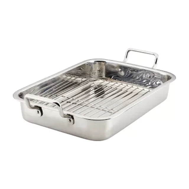 5-Ply Clad Stainless Steel Roaster with Removable Rack, 15 inch x 11.5 inch, Polished Stainless Steel
