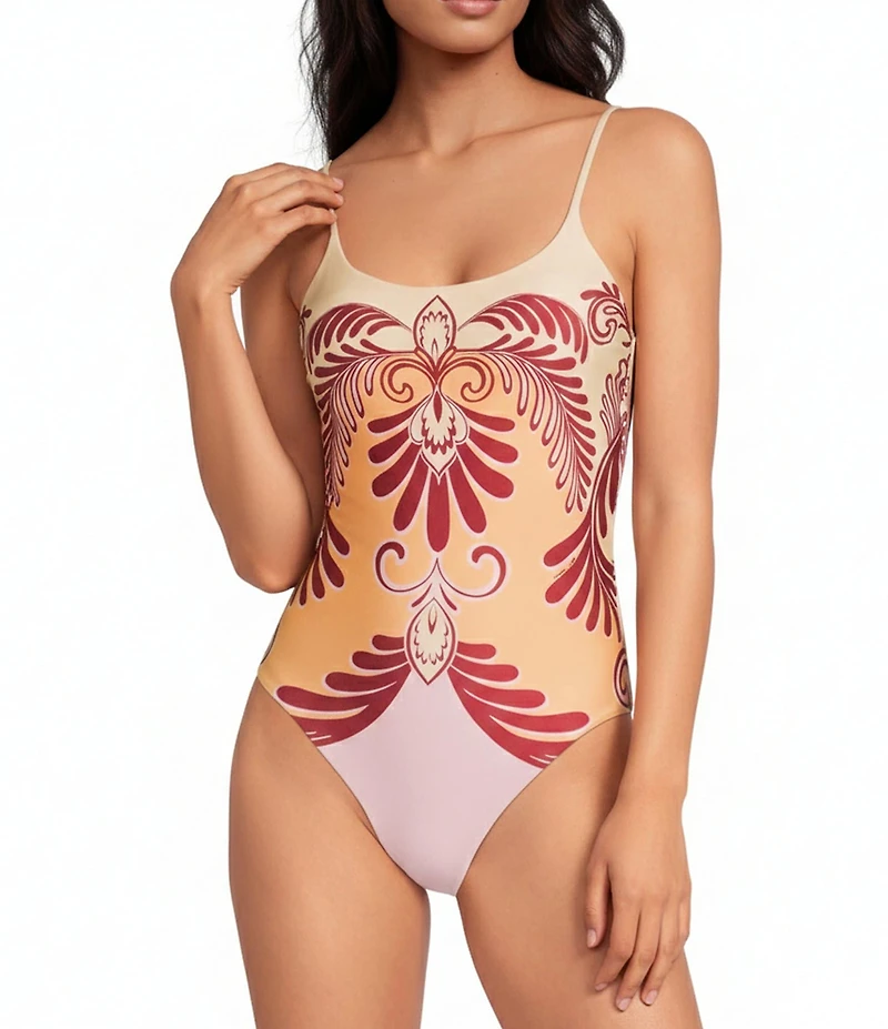 From Farm Rio, this swimsuit features: One piece silhouette Over the shoulder straps Low back Tie back closure Pull-on construction Recycled polyester/elastane Hand wash Imported.