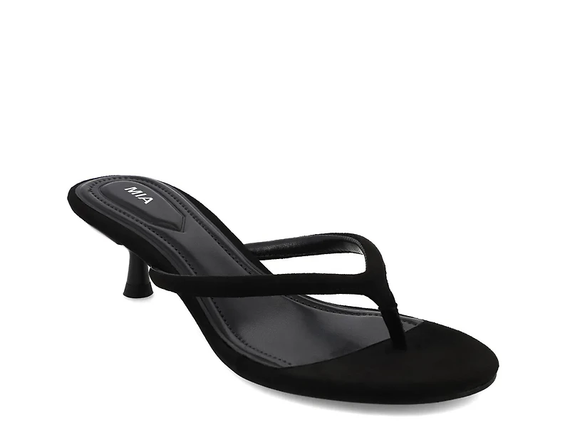 The Farren sandal from Mia brings a fresh, fashion-forward vibe to your warm-weather wardrobe. This slip-on sandal features a low kitten heel and a round open toe, creating a silhouette that transitions effortlessly from daytime occasions to evening plans.