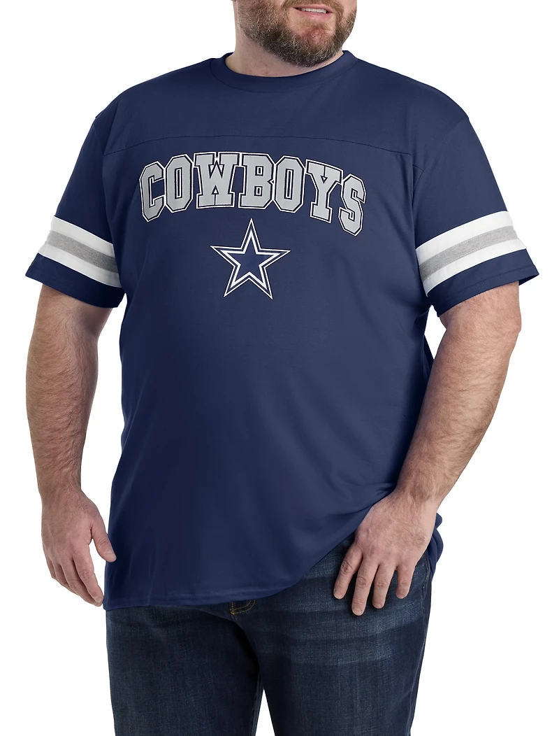 What's the first step to winning? Wear the shirt sporting your team logo. After that, it's game on. Whether you're at the stadium, at the supermarket or at the beach, show your support for your #1 football team with this 100% cotton tee. The screenprinted NFL chest logo is front and center so you can find fellow fans. Paired with jeans or shorts, it's a versatile, casual look that's sure to be a go-to favorite all year long.