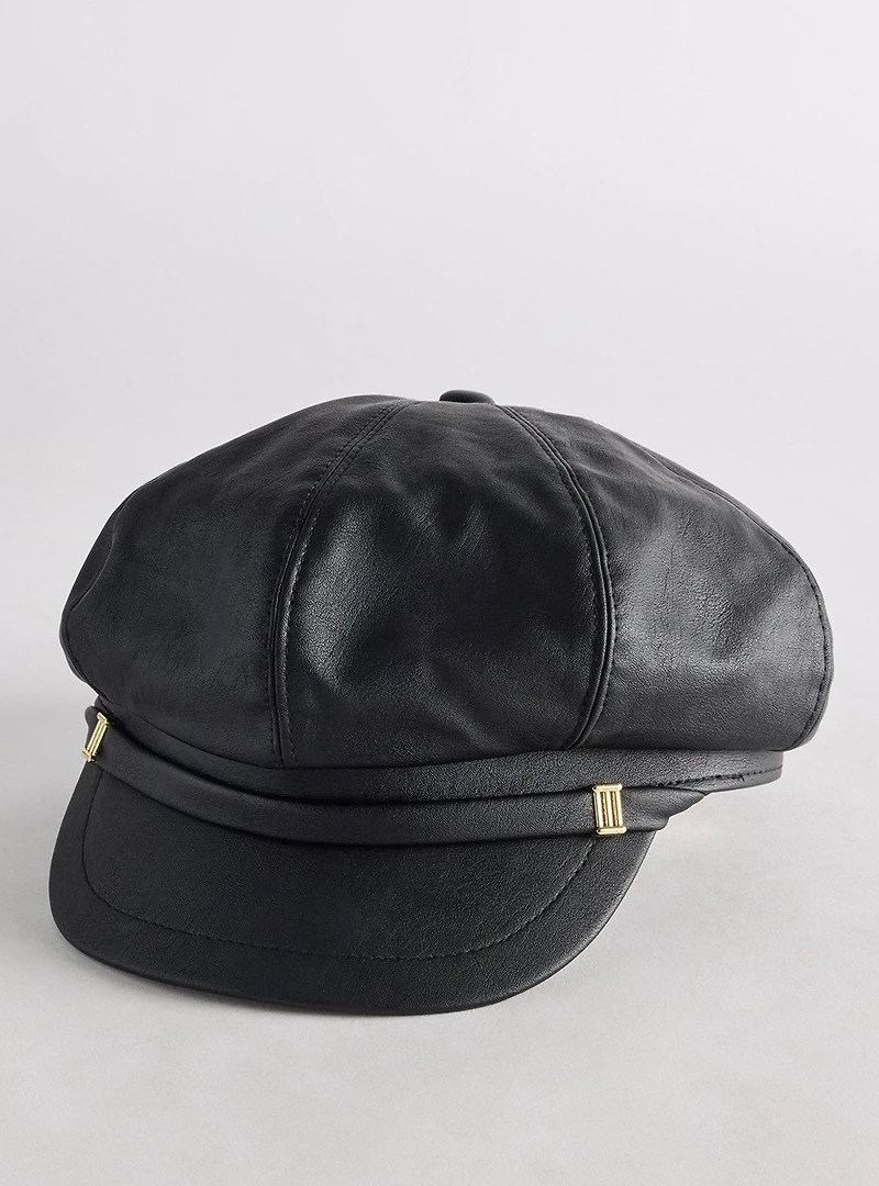 Faux Leather Cabbie Hat