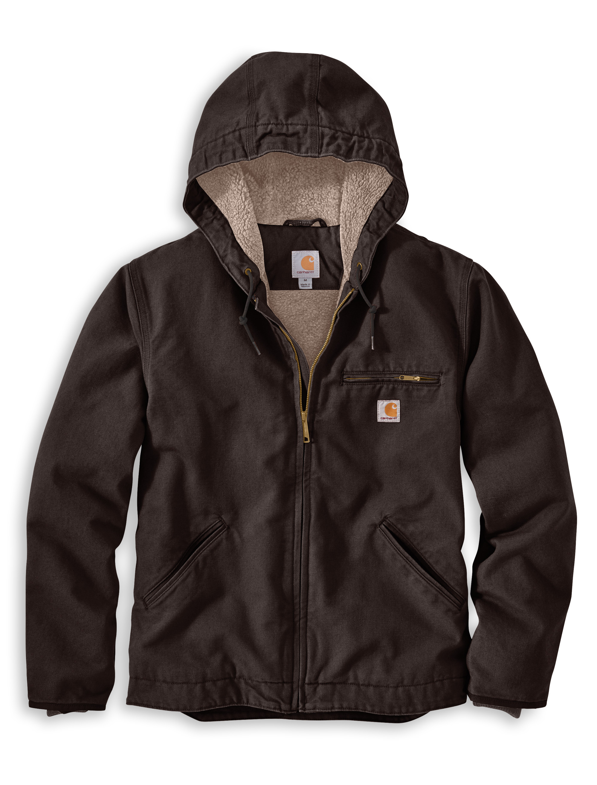 Previously known as the Sierra Jacket, this faux shearling-lined jacket from Carhartt is built to brave wind, cold and tough days on the job. The heavyweight cotton duck exterior is rugged and durable, yet sanded and brushed for softness. The faux-shearling lining provide additional warmth and comfort.