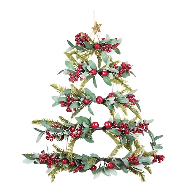 Nearly Natural Flat Back Wall Hanging Faux 3 Foot Pre-Lit Christmas Tree