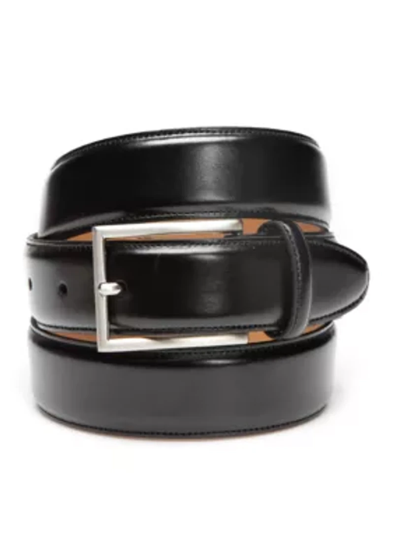 Enhance your look with this stitch dress belt. It has a polished look with a sophistication that's perfect for the office or any casual day. 1.25-in. strap W Buckle closure, For best fit, order a size larger than your pant size (for example your pant size is 34, order belt 36) Sleek faux leather belt, Classic design for a mordern look, Silver-tone squared harness buckle Domestic Belk Exclusive Material & Care Faux leather Spot clean only