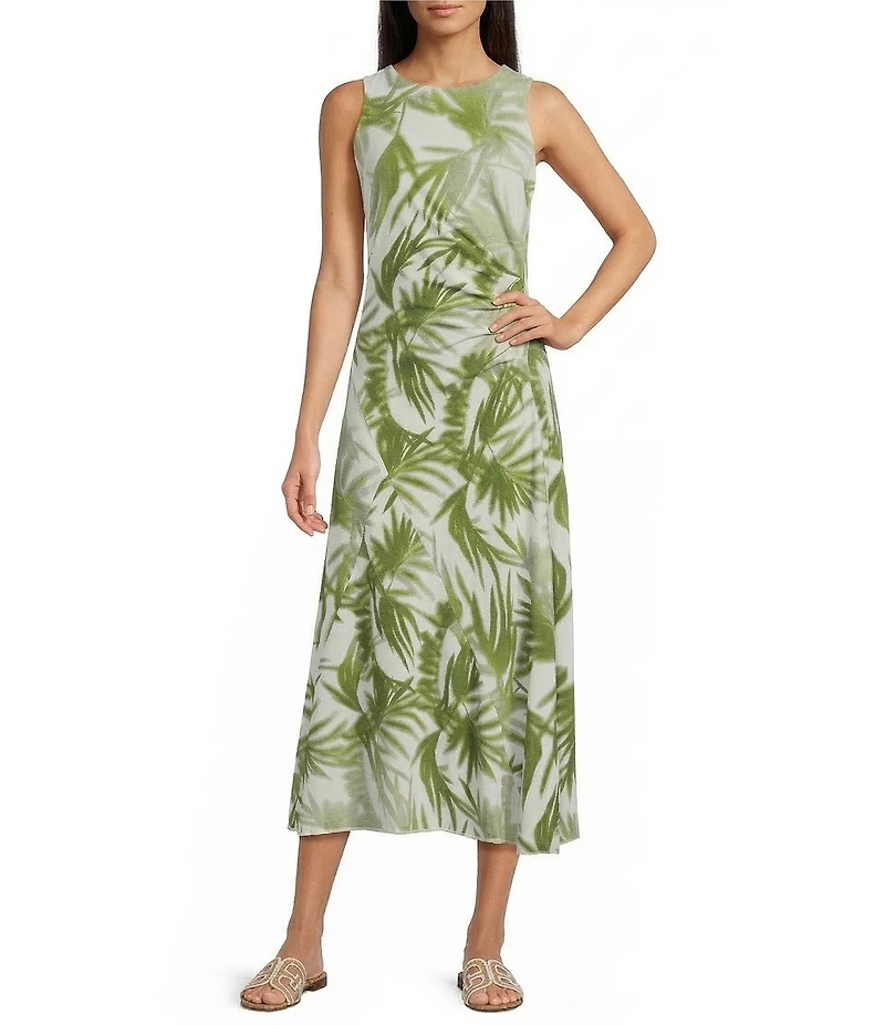 From Feather Gay, this dress features: Cotton-blend stretch fabrication  Crew neckline  Sleeveless Shadow palm print  Fitted Ruched detail at waist  Maxi length  Straight hem  Pullover construction  Approx. 50" length  Cotton/modal/spandex Machine wash cold  Imported.