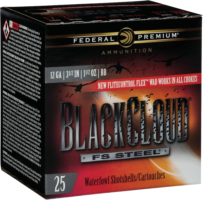 The Federal Premium Black Cloud 12 Gauge BB Shotshells feature rear-opening FLITECONTROL FLEX™ wads for the tightest patterns possible through ported and standard waterfowl chokes. This ammunition is designed to help you take down waterfowl.