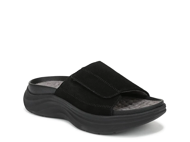 The Feel Calm platform sandal by Dr. Scholl’s brings a fresh approach to casual comfort with a slip-on design that’s perfect for busy days and post-workout recovery. Featuring a cushioned footbed and a supportive platform, this sandal moves naturally with you while providing a soothing feel that helps reduce fatigue. The built-in insert footbed is specially designed with targeted stimulating bubbles to help your feet recover faster, improve blood circulation in the feet, and reduce fatigue to help prevent muscle soreness in your feet and lower body.